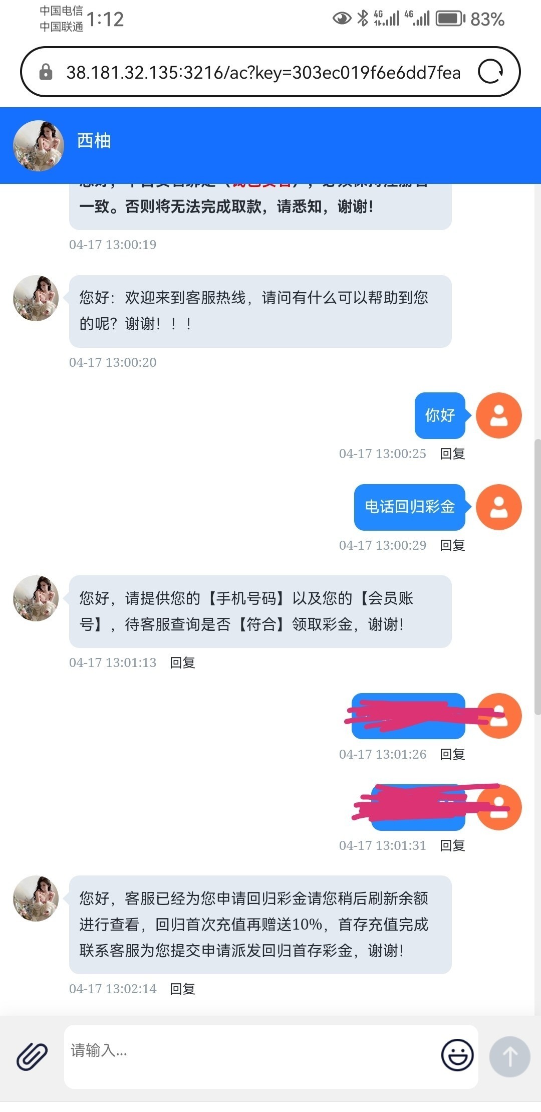 刚刚接到电话,找客服申请了38回归彩金,玩过的可以去试试